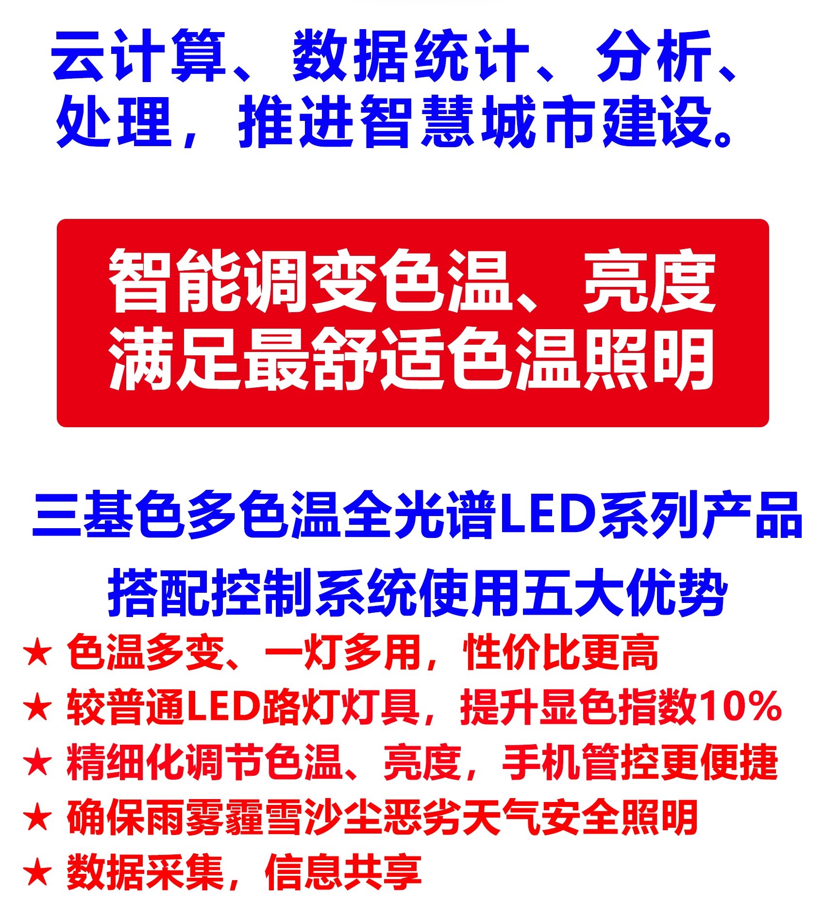 重慶“中國(guó)創(chuàng)造”三基色多色溫全光譜LED人工智能路燈技術(shù)特點(diǎn)介紹